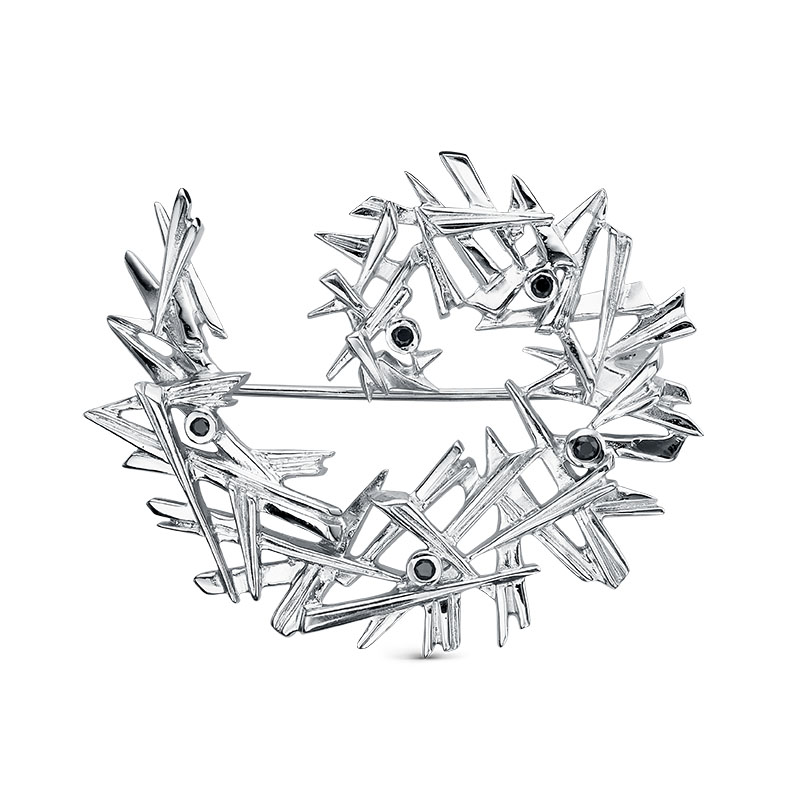 | Вставка | 5 Фианитов, огранка круглая, вес 0,023, цвет черный; Родий |