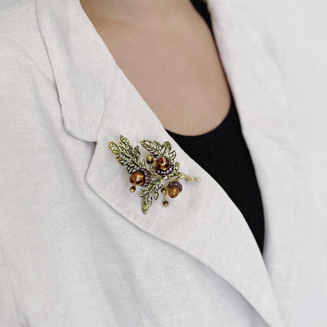 Брошь c эмалью и янтарем