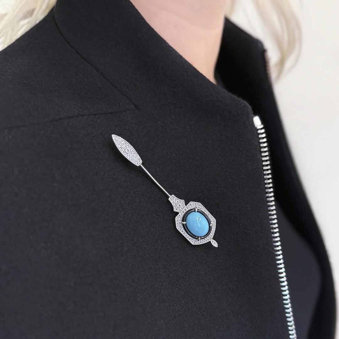| Вставка | Агат, цвет черный; Бирюза; 127 Топазов, цвет белый; Родий |