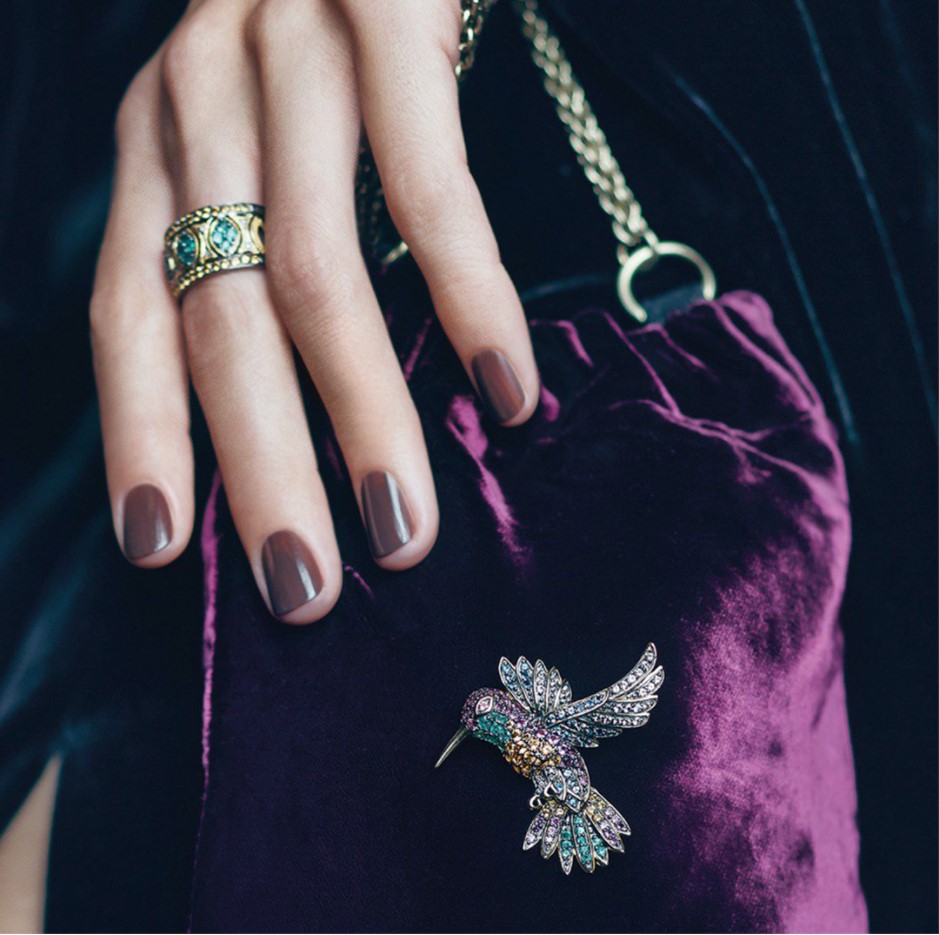 Брошь из серебра c сапфирами, изумрудами и агатом