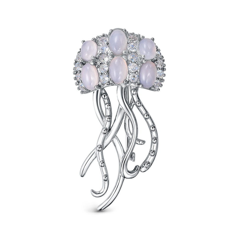 Брошь из серебра c топазами и халцедоном