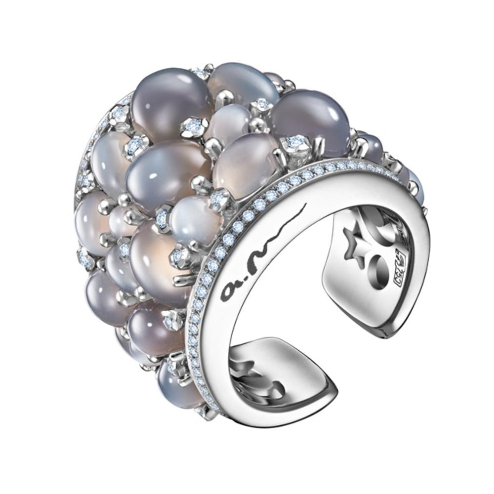 Кольцо из белого золота c бриллиантами и лунным камнем