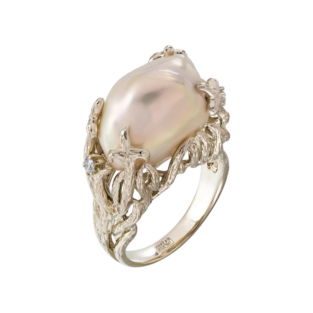 Кольцо из желтого золота c бриллиантами и жемчугом