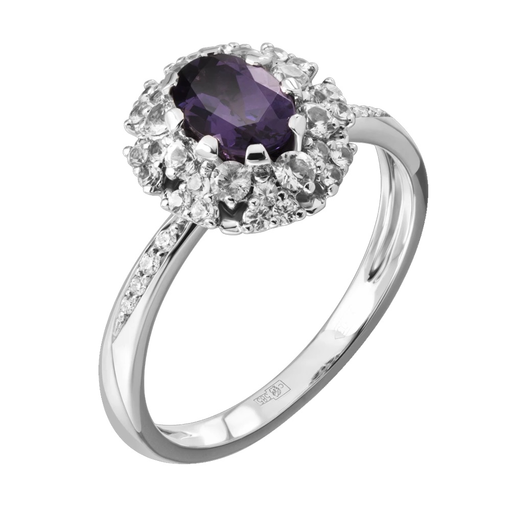 Кольцо из белого золота c бриллиантами и шпинелью