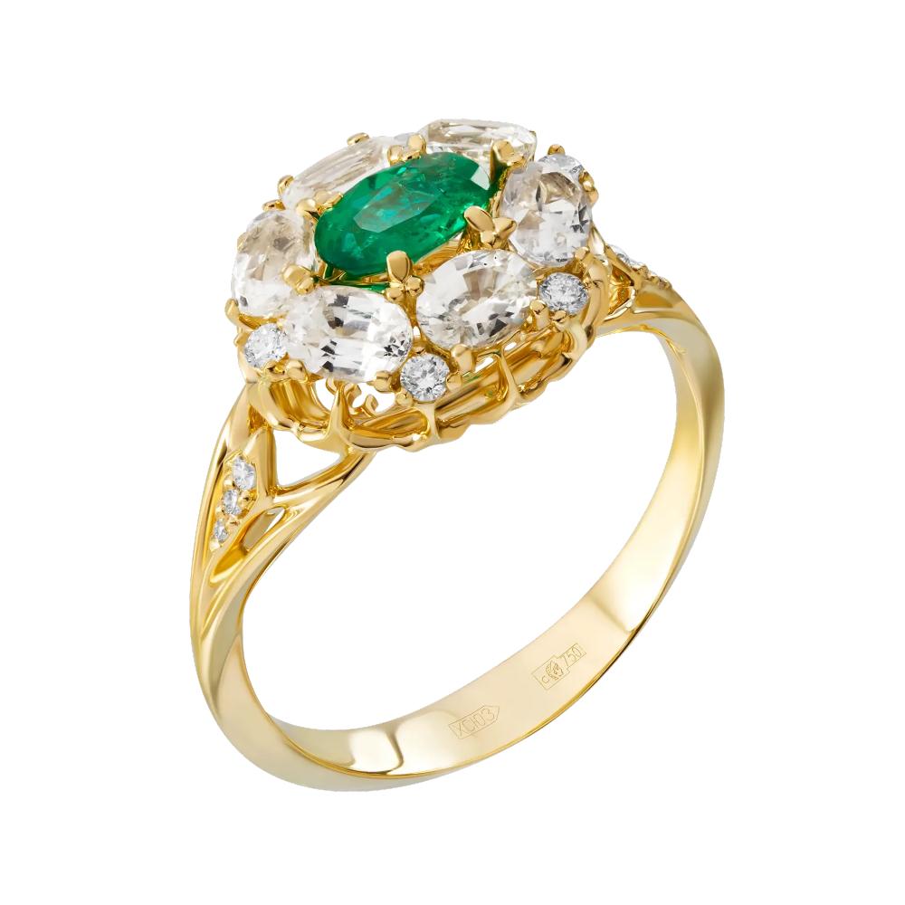 Кольцо из желтого золота c бриллиантами и изумрудами