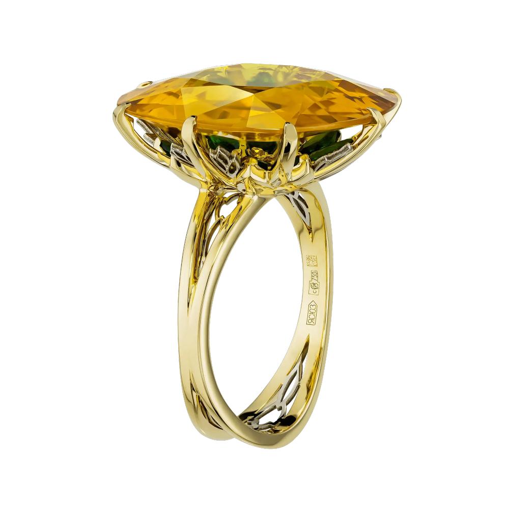 Кольцо из комбинированного золота c сапфирами, рубинами и тсаворитом