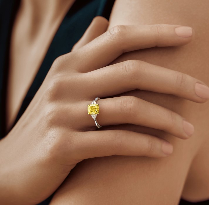 | Вставка | 1 Бриллиант, огранка кушон, 8-5/5, вес 0,712; 2 Бриллианта, огранка триллион, граней 46, 3/3, вес 0,133 |