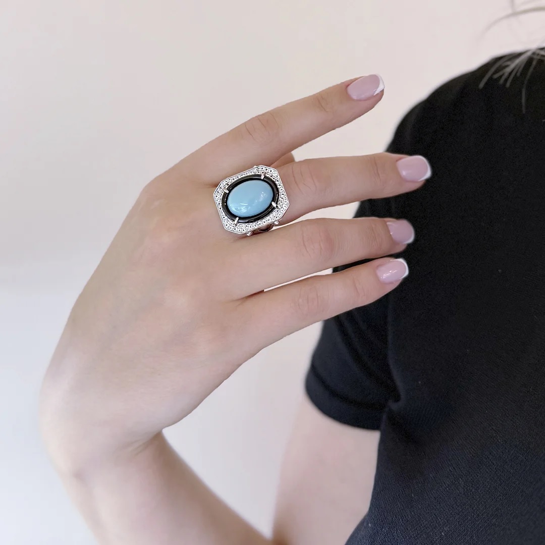 | Вставка | Агат, цвет черный; Бирюза; 70 Топазов, цвет белый; Родий |