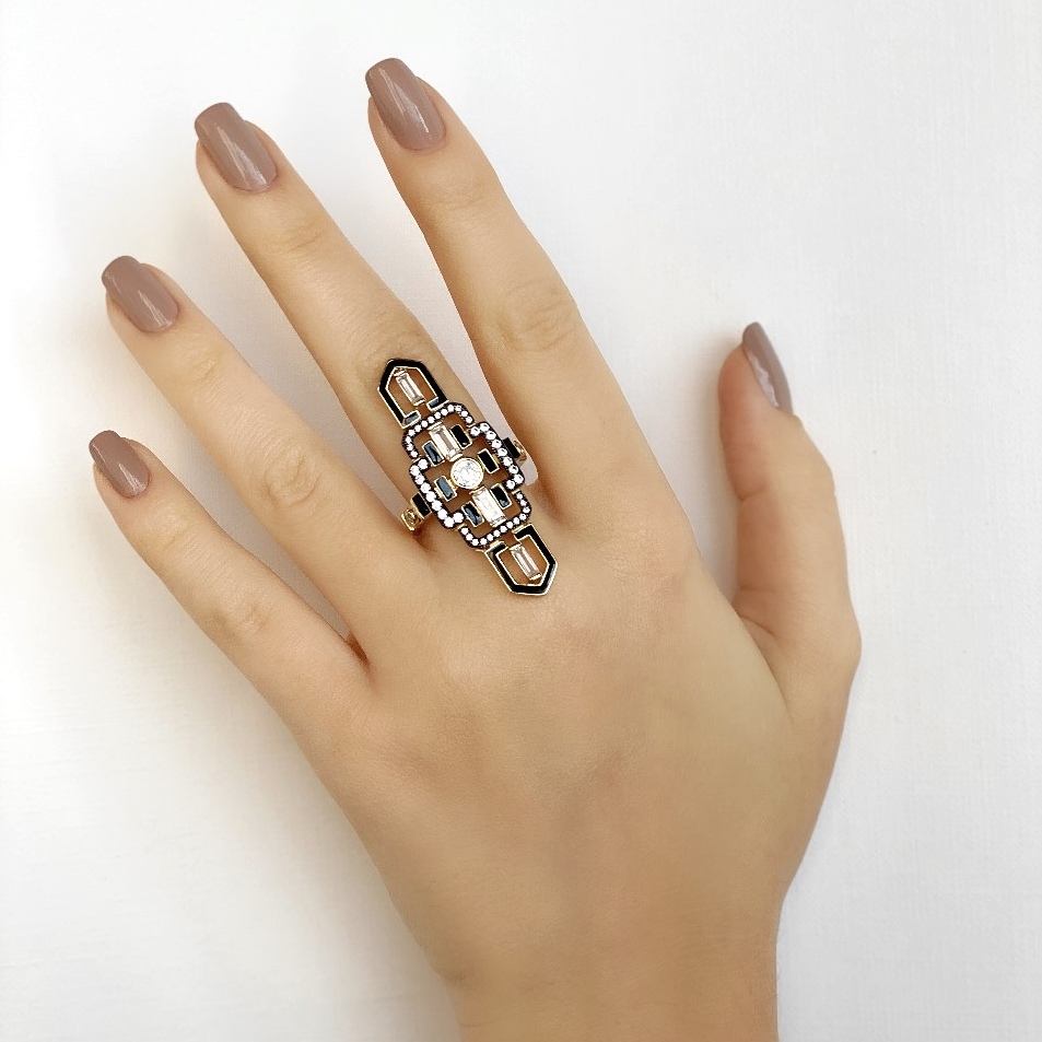 Кольцо из серебра c фианитами и эмалью