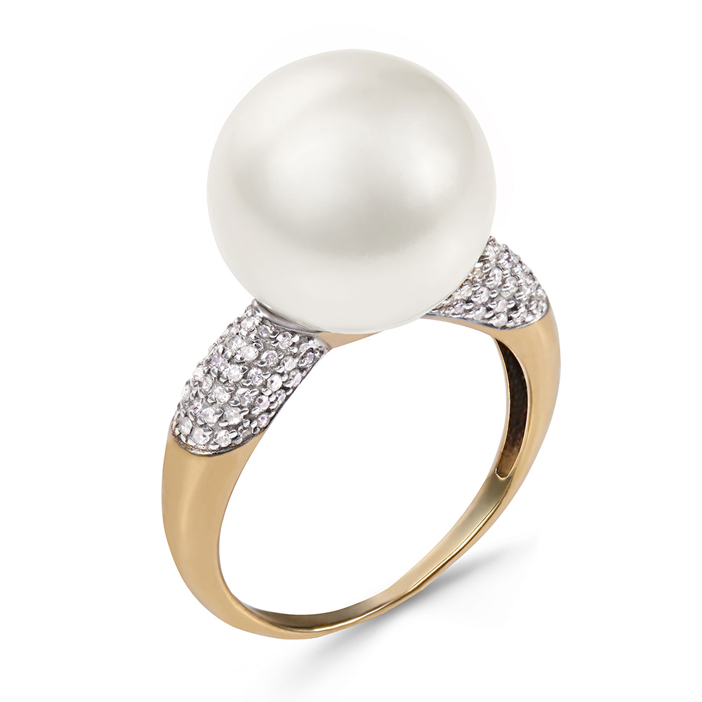 Кольцо из желтого золота c бриллиантами и жемчугом