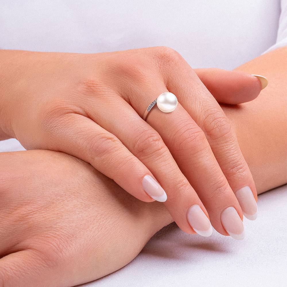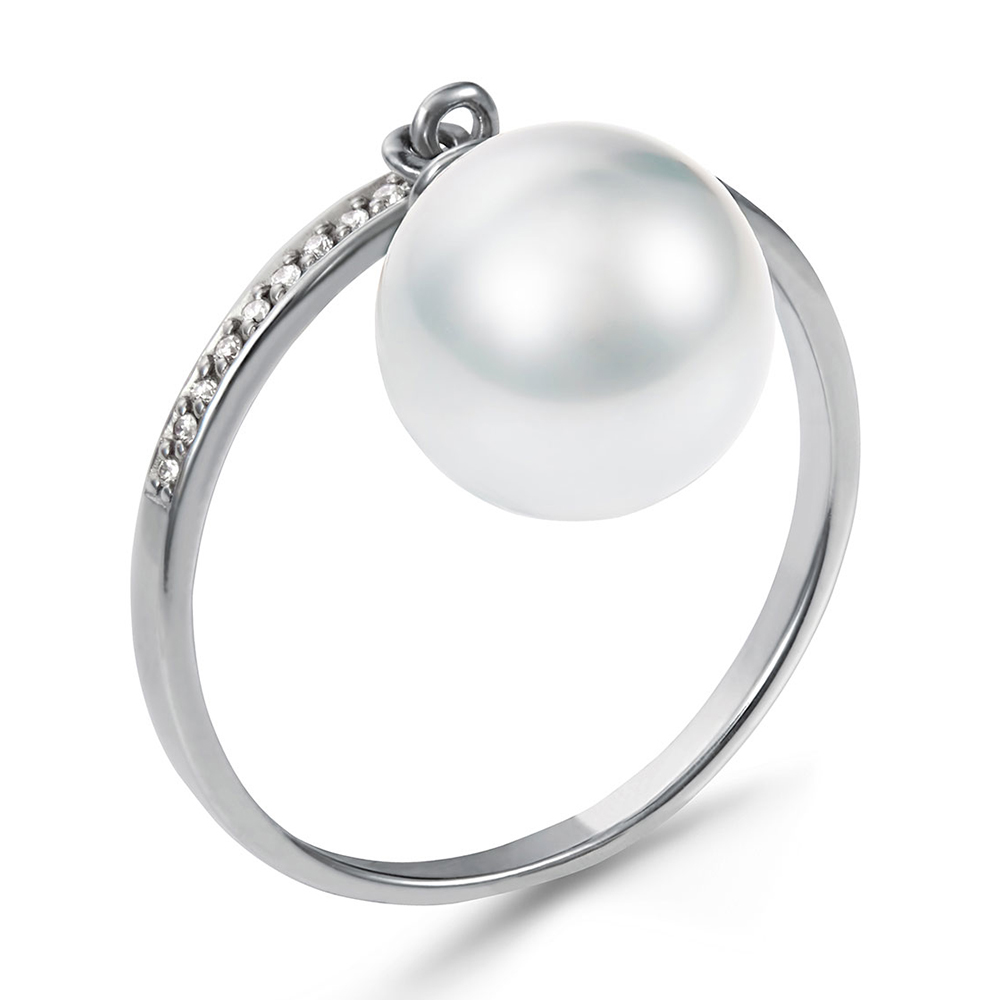 Кольцо из белого золота c бриллиантами и жемчугом