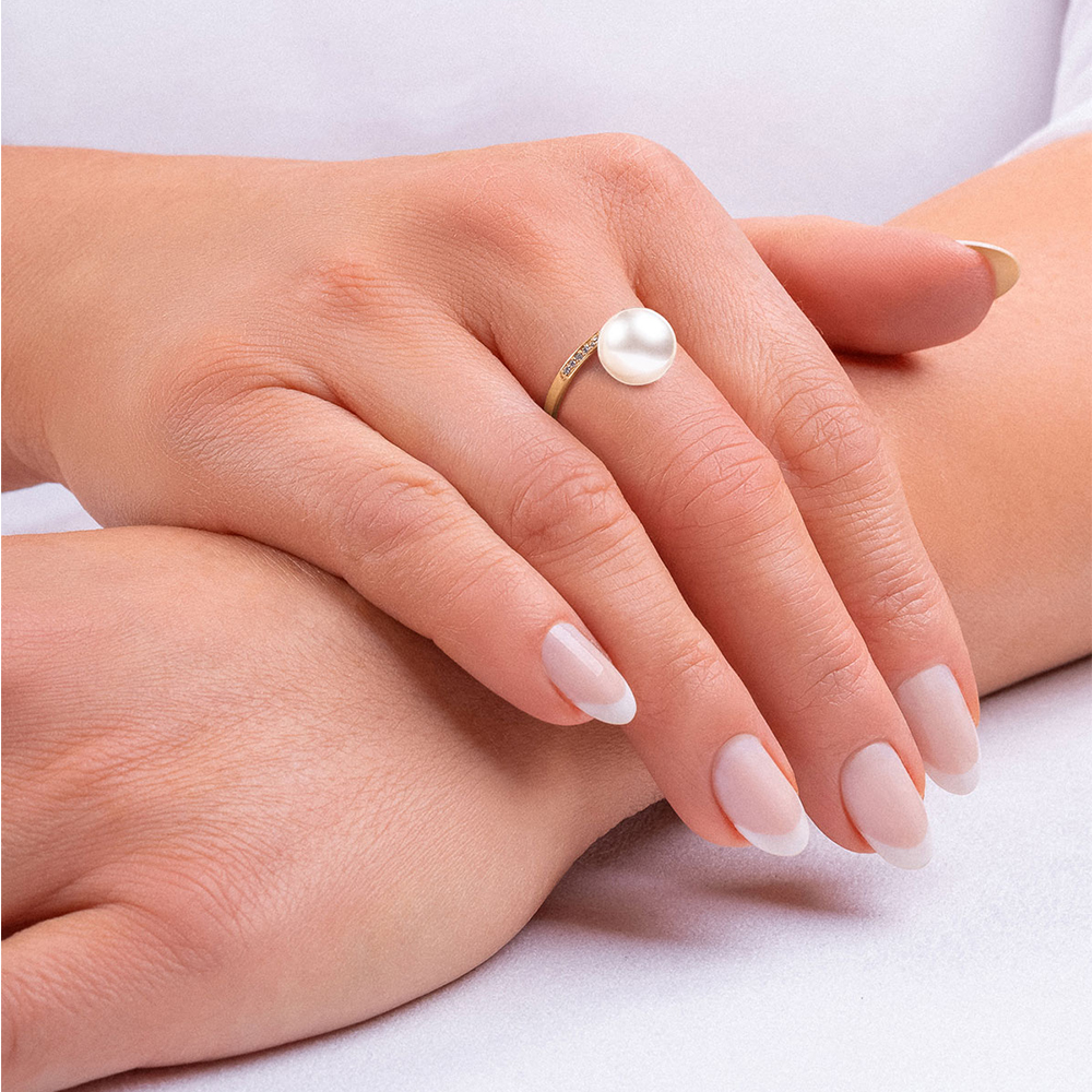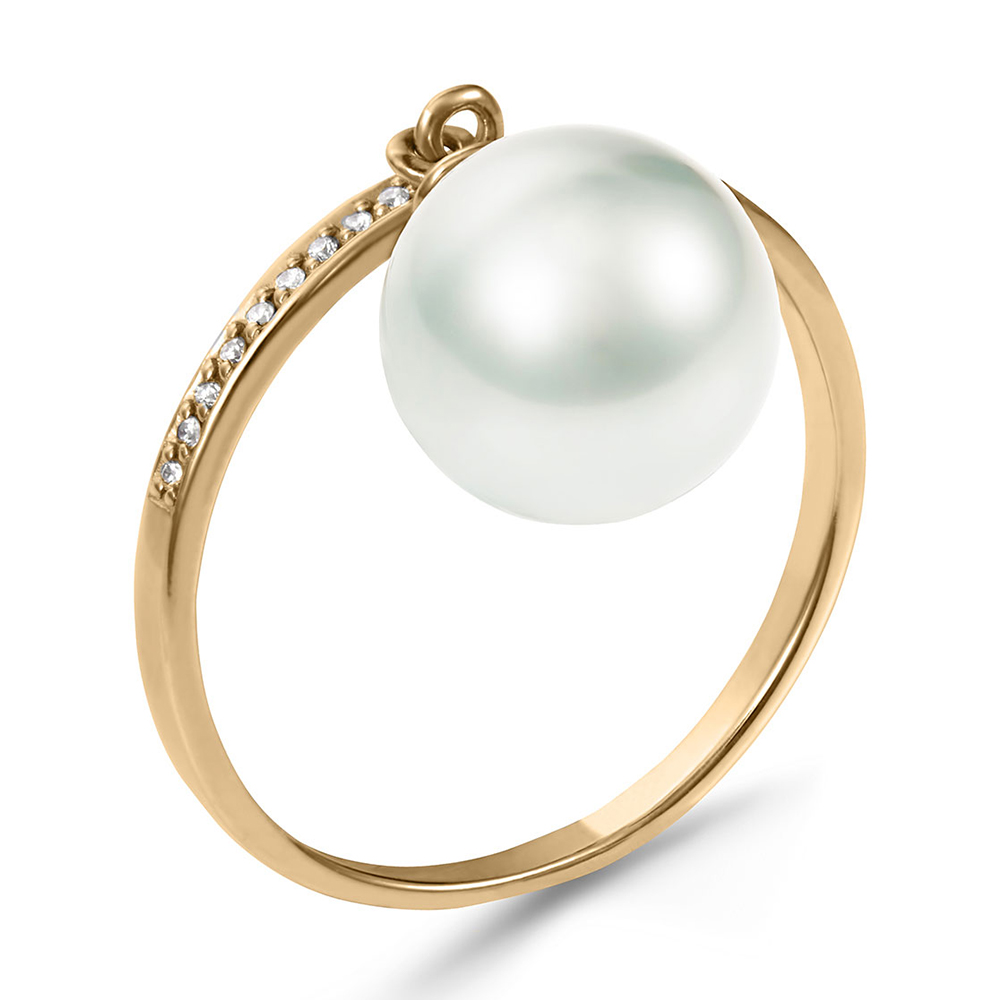 Кольцо из желтого золота c бриллиантами и жемчугом