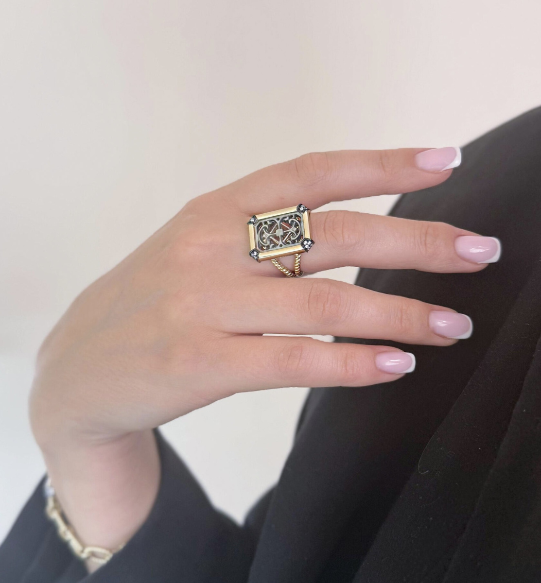 | Вставка | Перламутр; Фианит; Позолота; Родий, цвет черный |