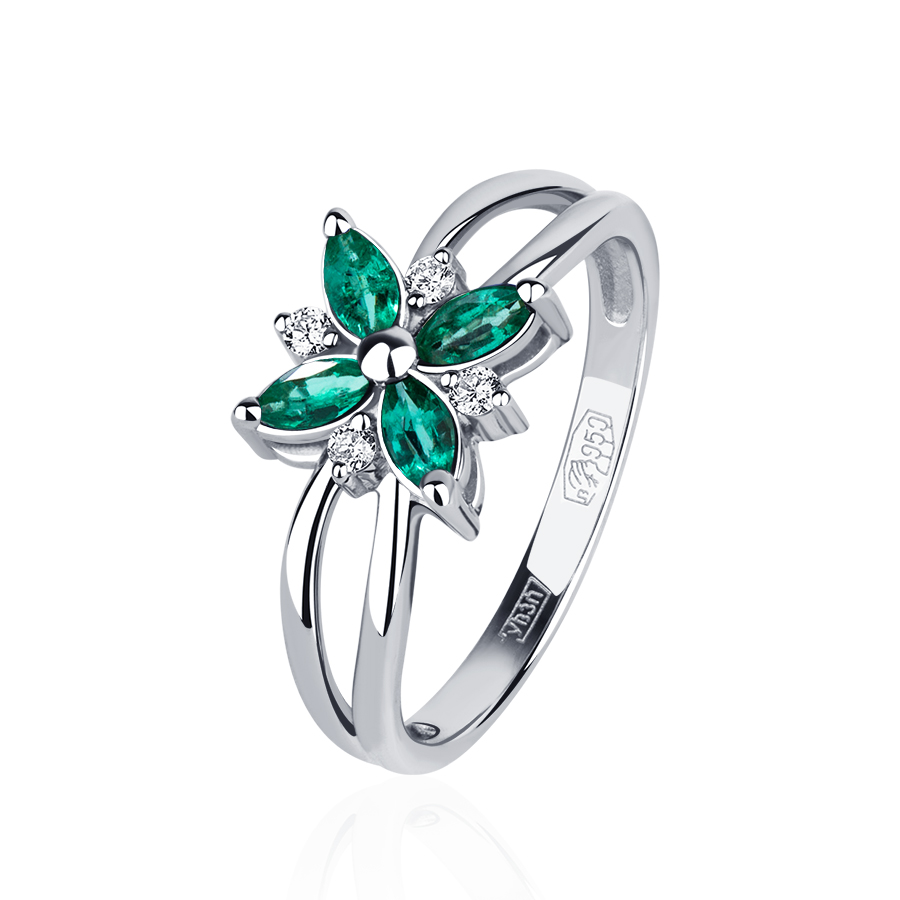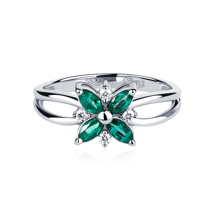 Кольцо из комбинированного золота c бриллиантами и изумрудами