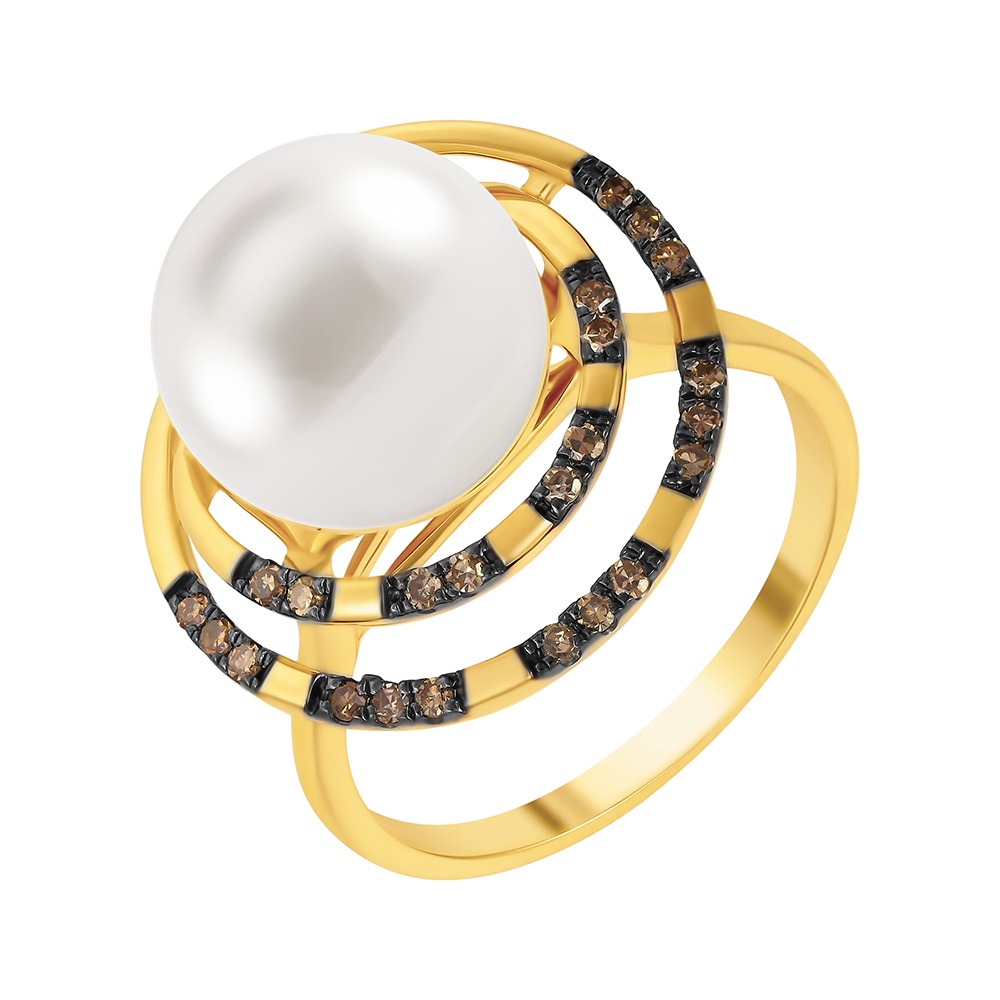 Кольцо из желтого золота c бриллиантами и жемчугом