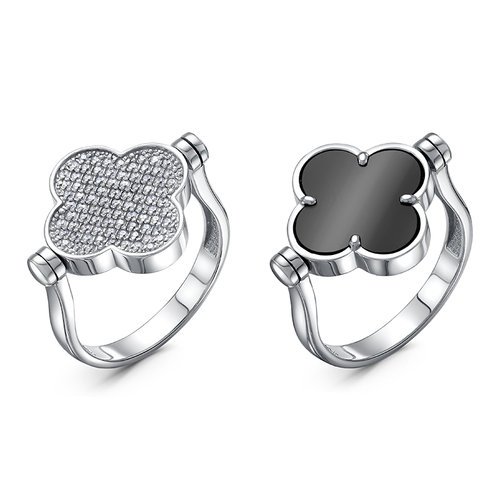 Кольцо из серебра c фианитами и ониксом
