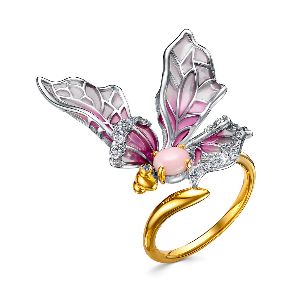 Кольцо из серебра c топазами, перламутром и эмалью