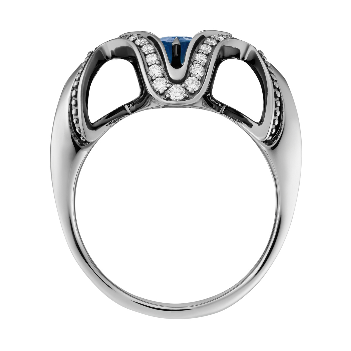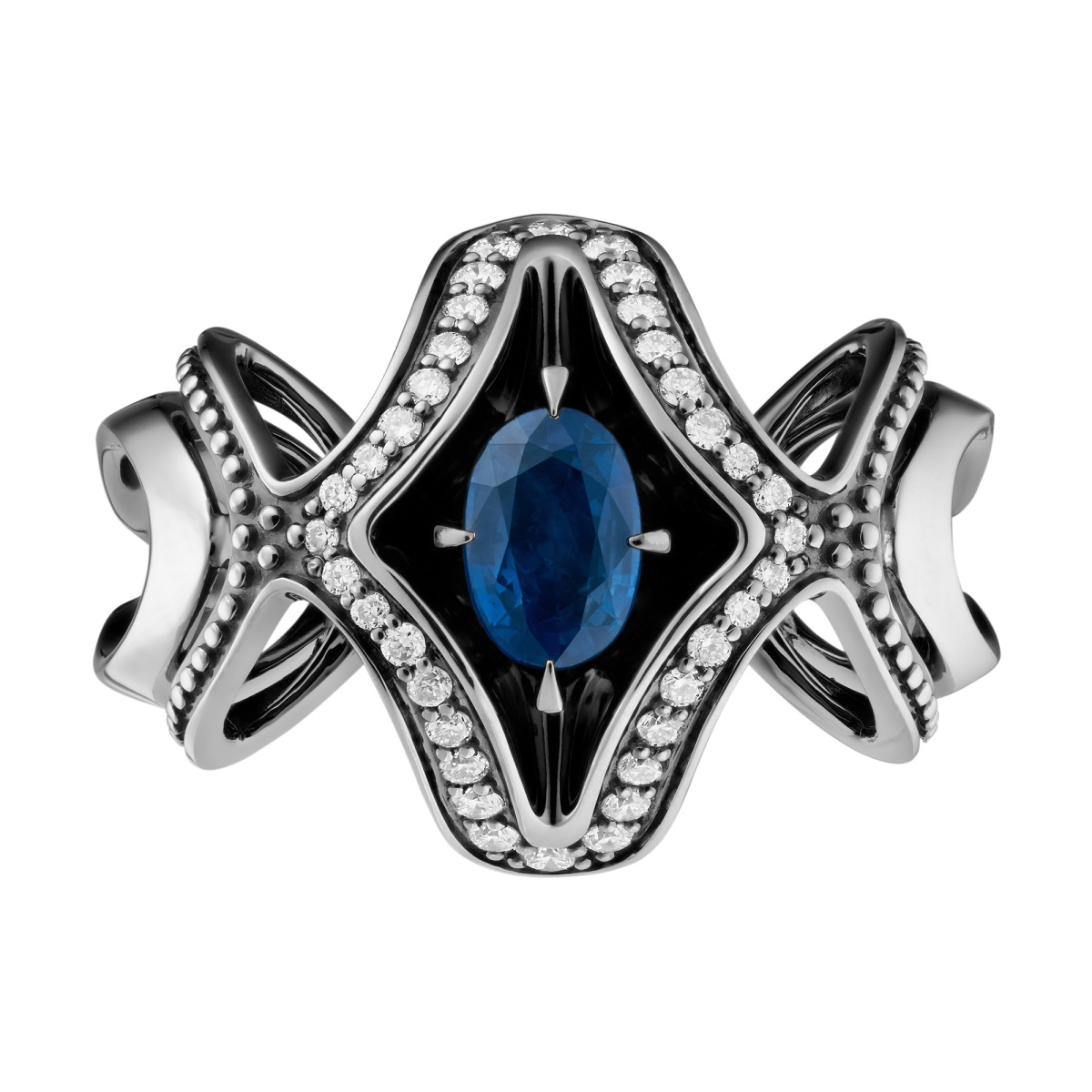 Кольцо из белого золота c бриллиантами и сапфирами