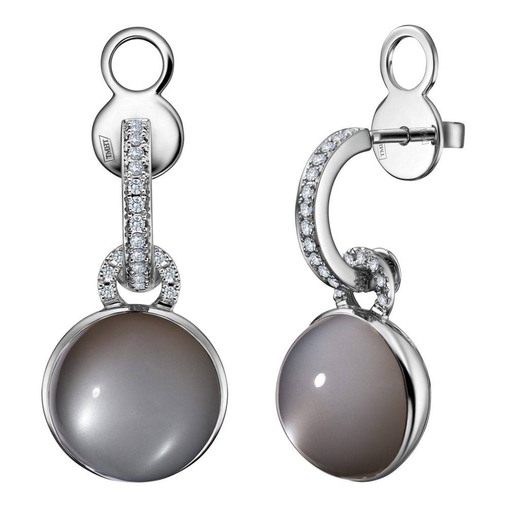 Серьги из белого золота c бриллиантами и лунным камнем