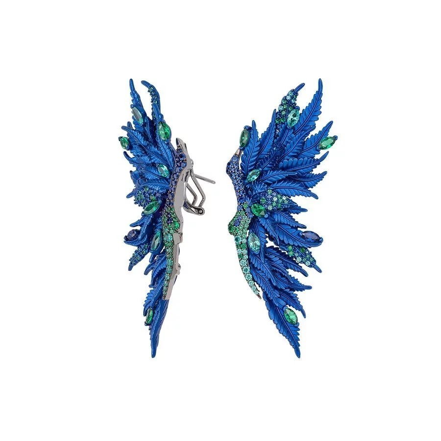 Брошь c сапфирами, изумрудами, турмалином и эмалью