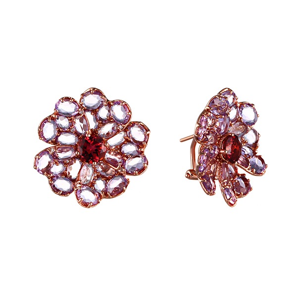 Серьги из красного золота c бриллиантами, аметистами и турмалином