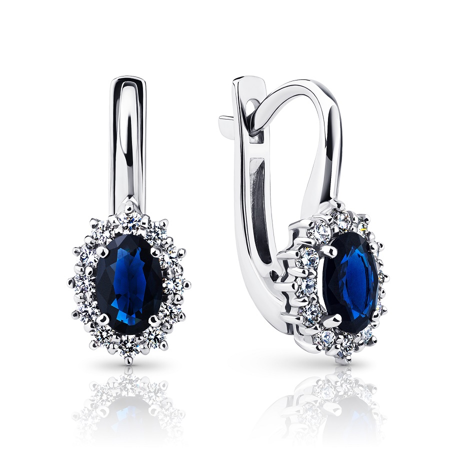 Серьги из белого золота c бриллиантами и сапфирами