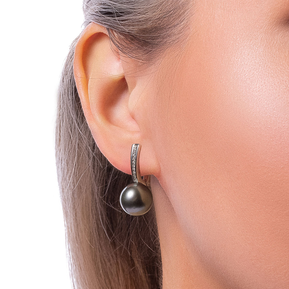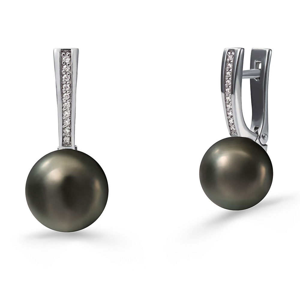 Серьги из белого золота c бриллиантами и жемчугом