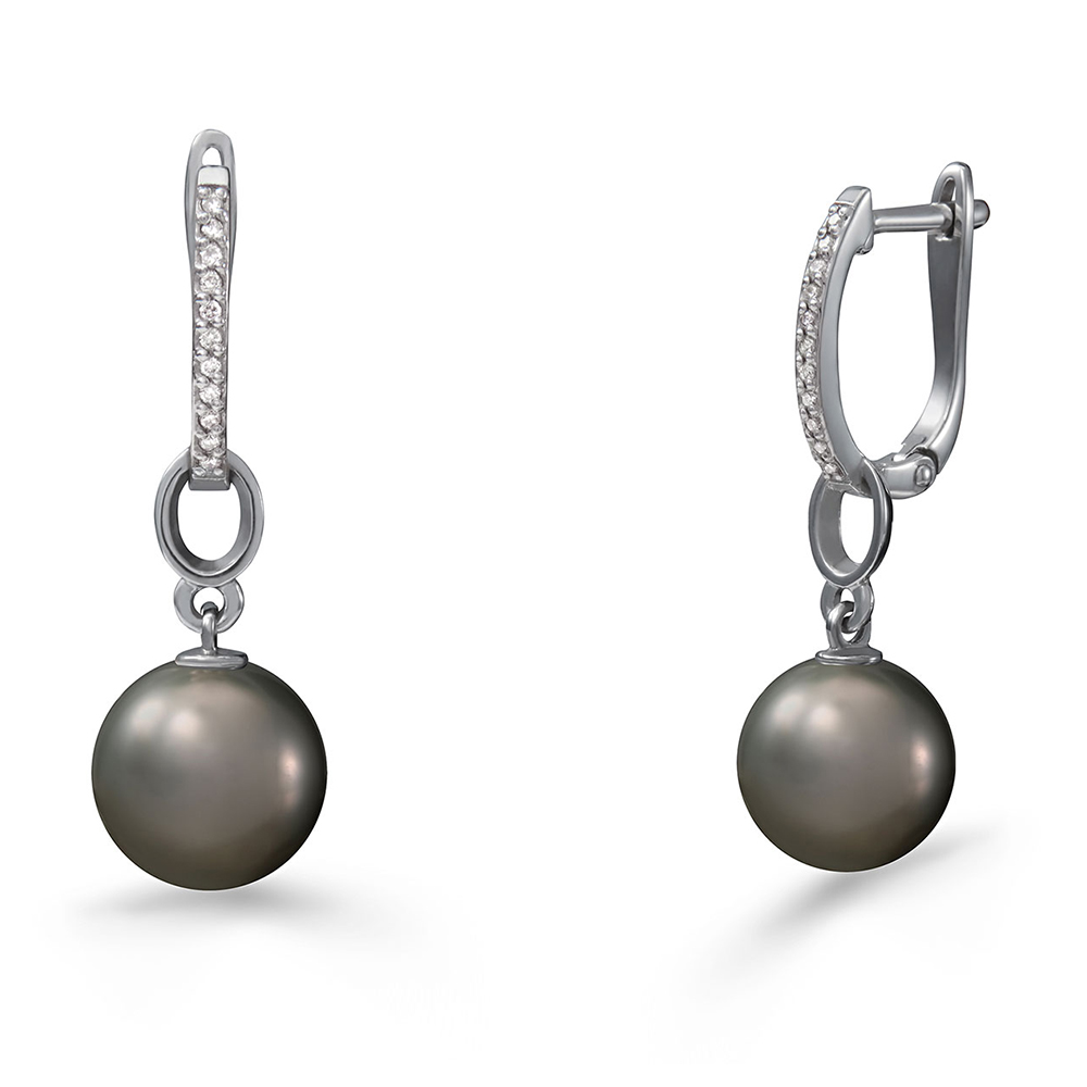 Серьги из белого золота c бриллиантами и жемчугом