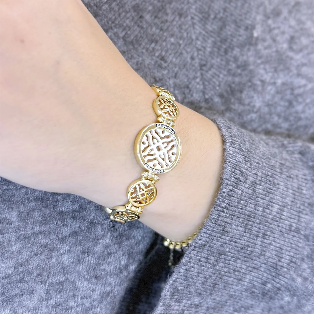 Браслет из серебра c фианитами и перламутром