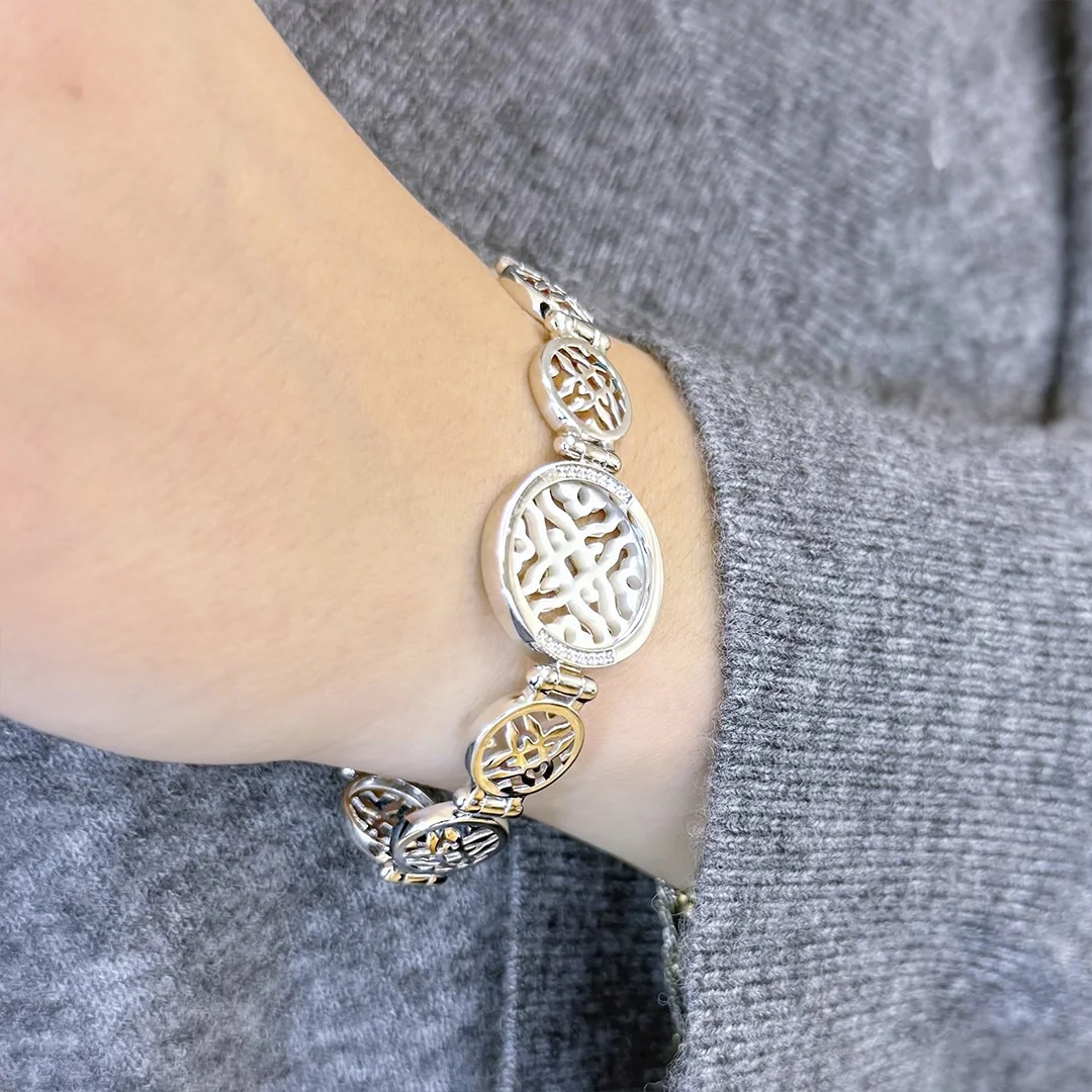 Браслет из серебра c фианитами и перламутром
