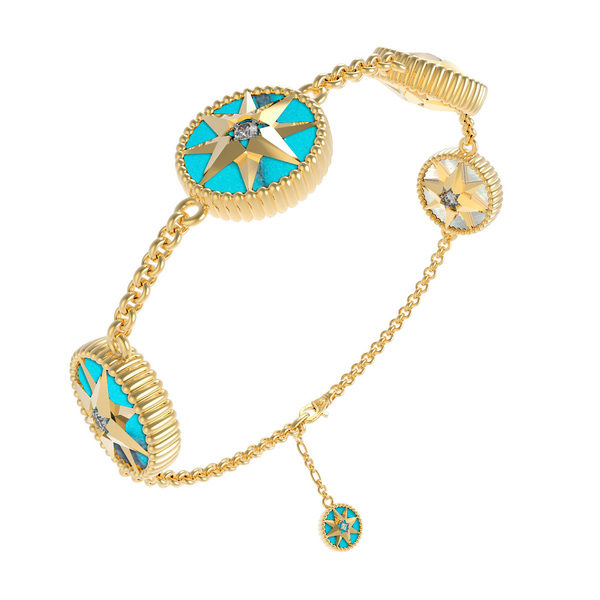 Браслет из желтого золота c фианитами, бирюзой и перламутром