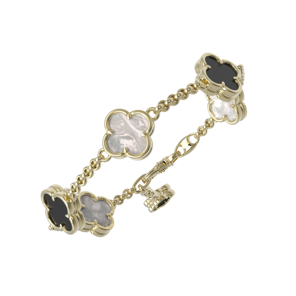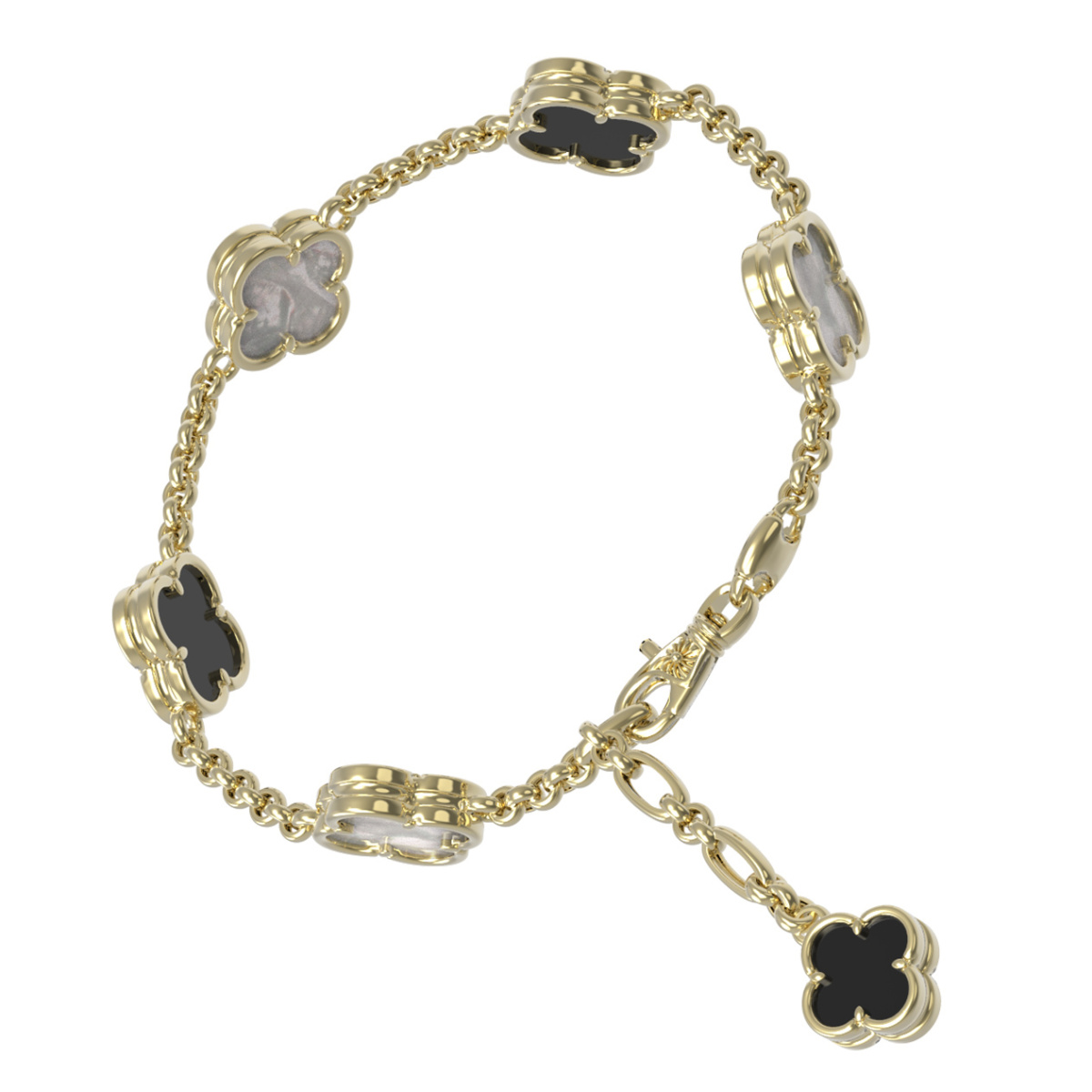 Браслет из желтого золота c ониксом и перламутром