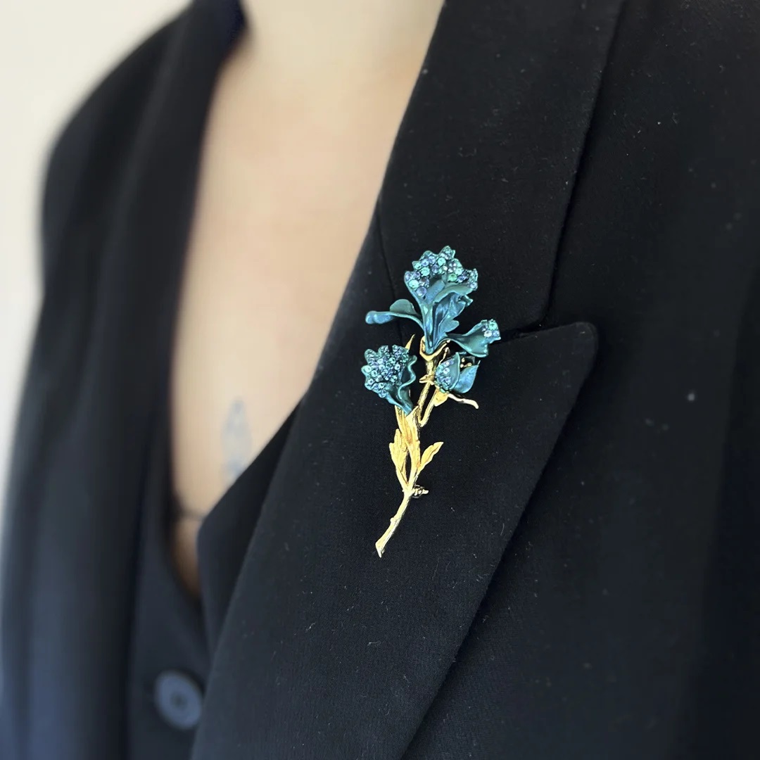 Брошь c фианитами и эмалью