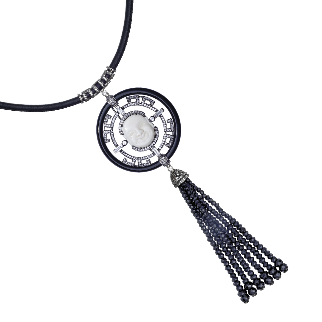 | Вставка | Кость буйвола; Топаз, цвет белый; Оникс, цвет черный; Шпинель, цвет черный; Кожа; Родий, цвет черный |
