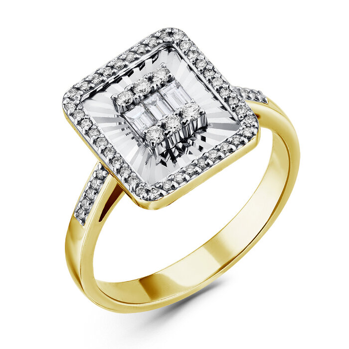 | Вставка | 54 Бриллианта, огранка круглая, граней 57, 4/6, вес 0,239; 3 Бриллианта, огранка багет пр, граней 25, 3/4, вес 0,107; Родий |