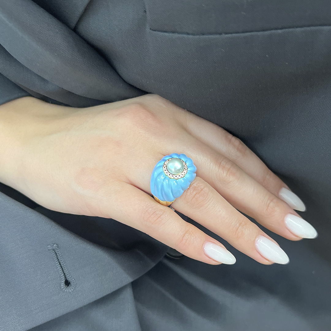 Кольцо из серебра c жемчугом, топазами и бирюзой