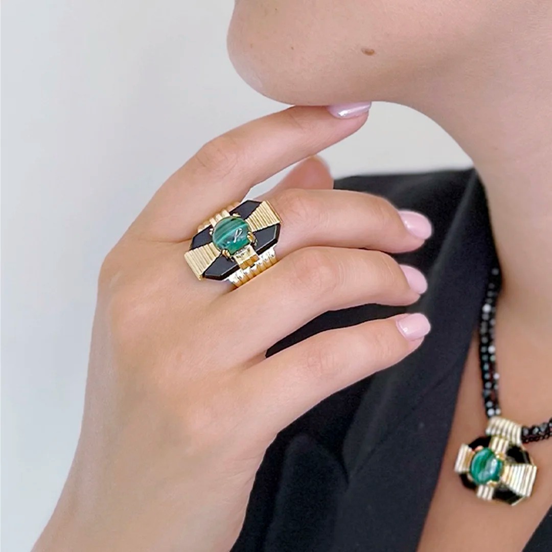 Колье из серебра c лазуритом, ониксом и шпинелью