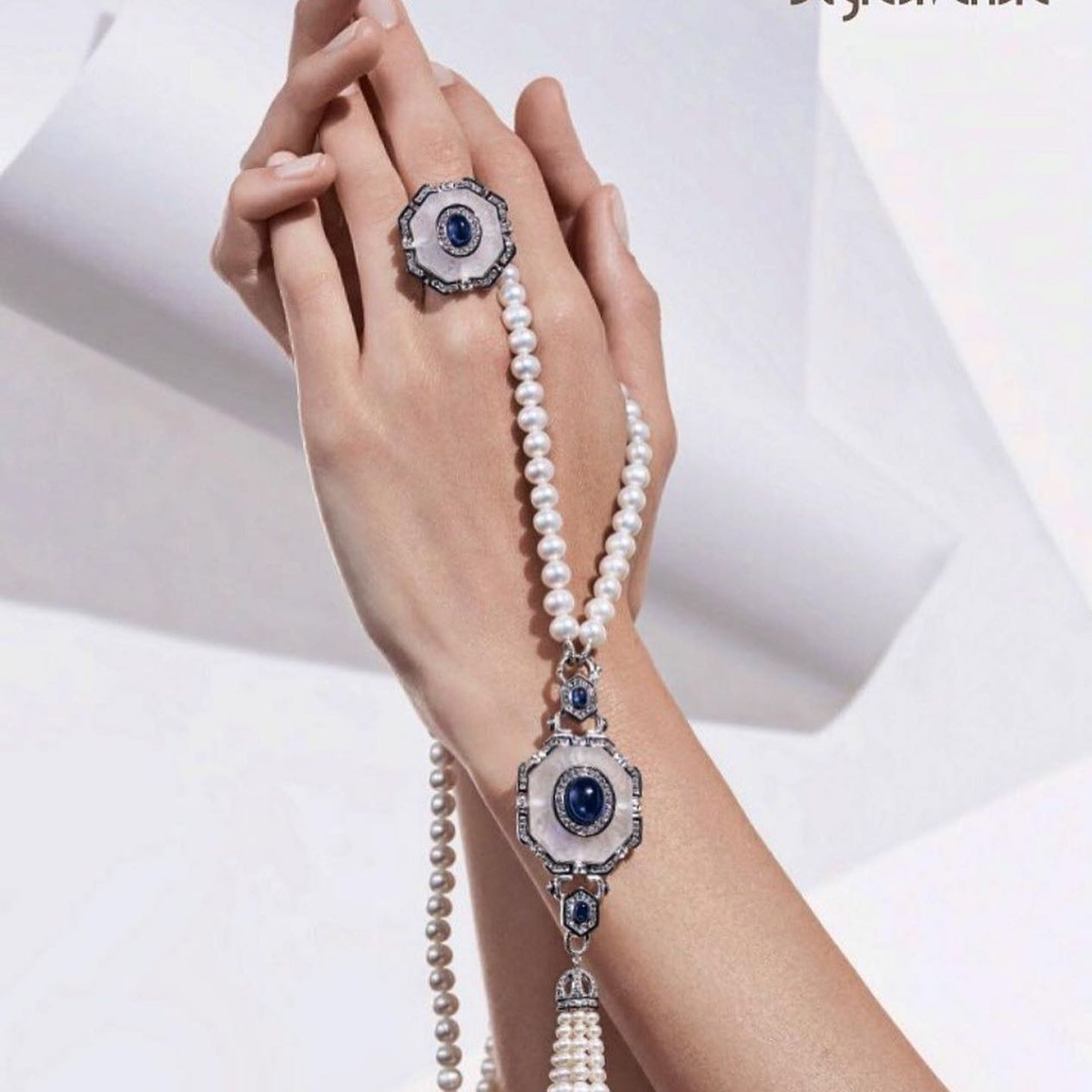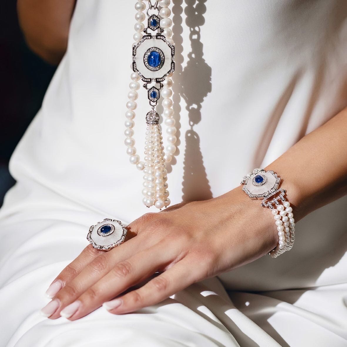 Браслет из серебра c сапфирами, жемчугом, топазами и горным хрусталем
