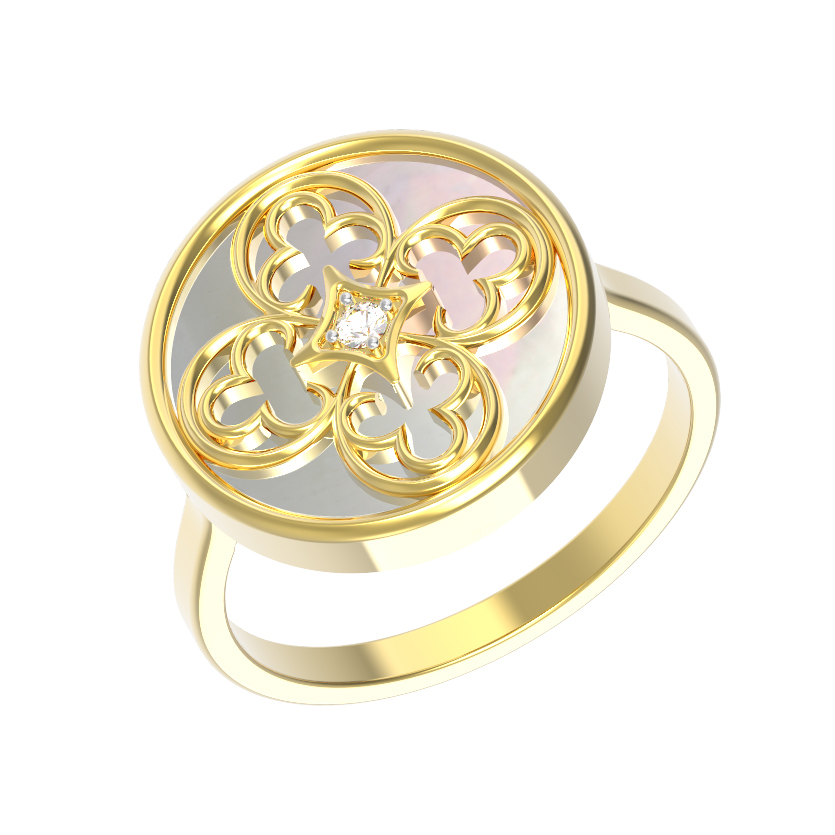 Кольцо из желтого золота c фианитами и перламутром