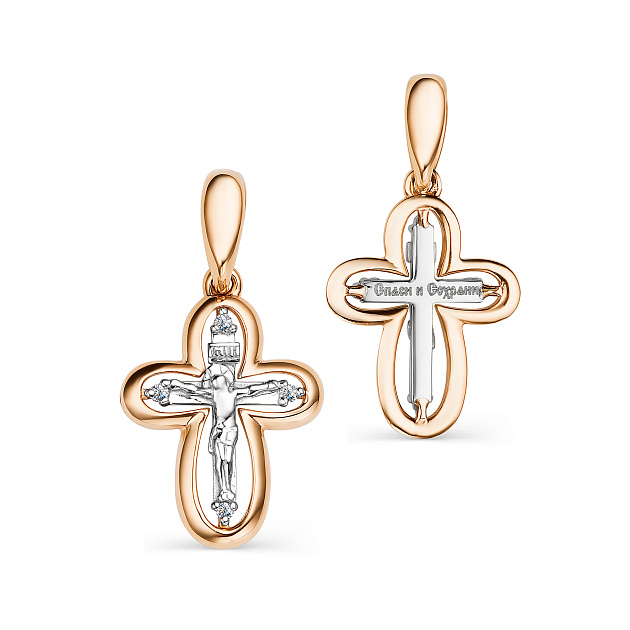 Крест из комбинированного золота c бриллиантами