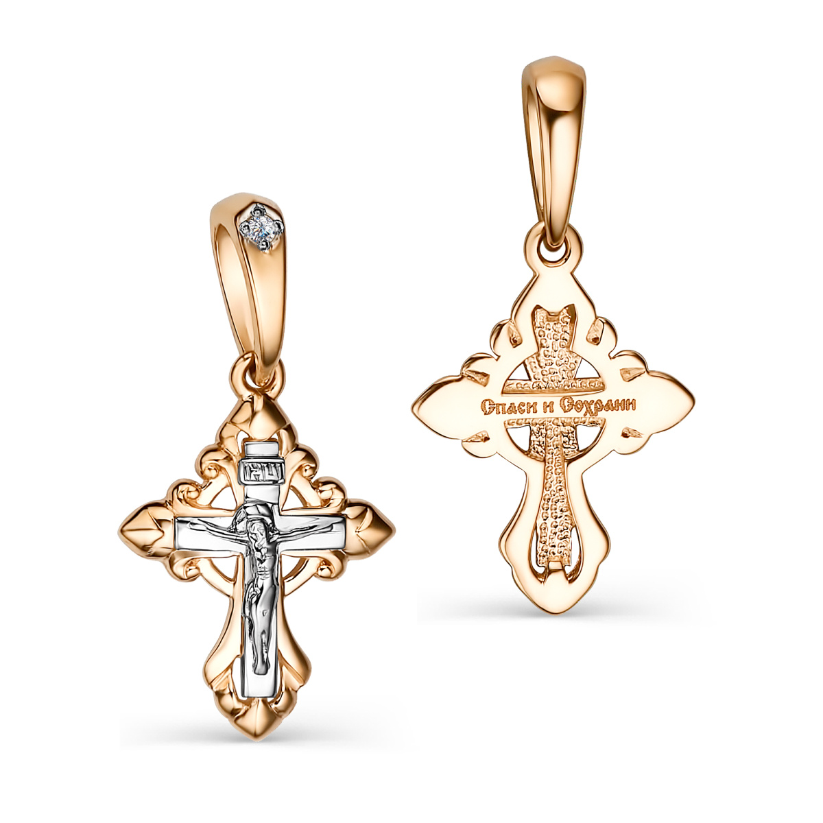 Крест из комбинированного золота c бриллиантами