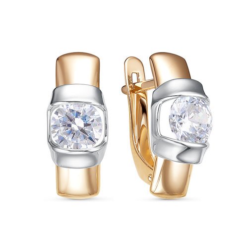 Серьги из комбинированного золота c фианитами