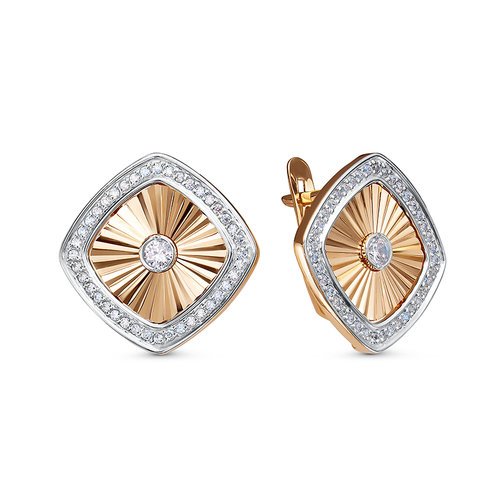 Серьги из комбинированного золота c фианитами
