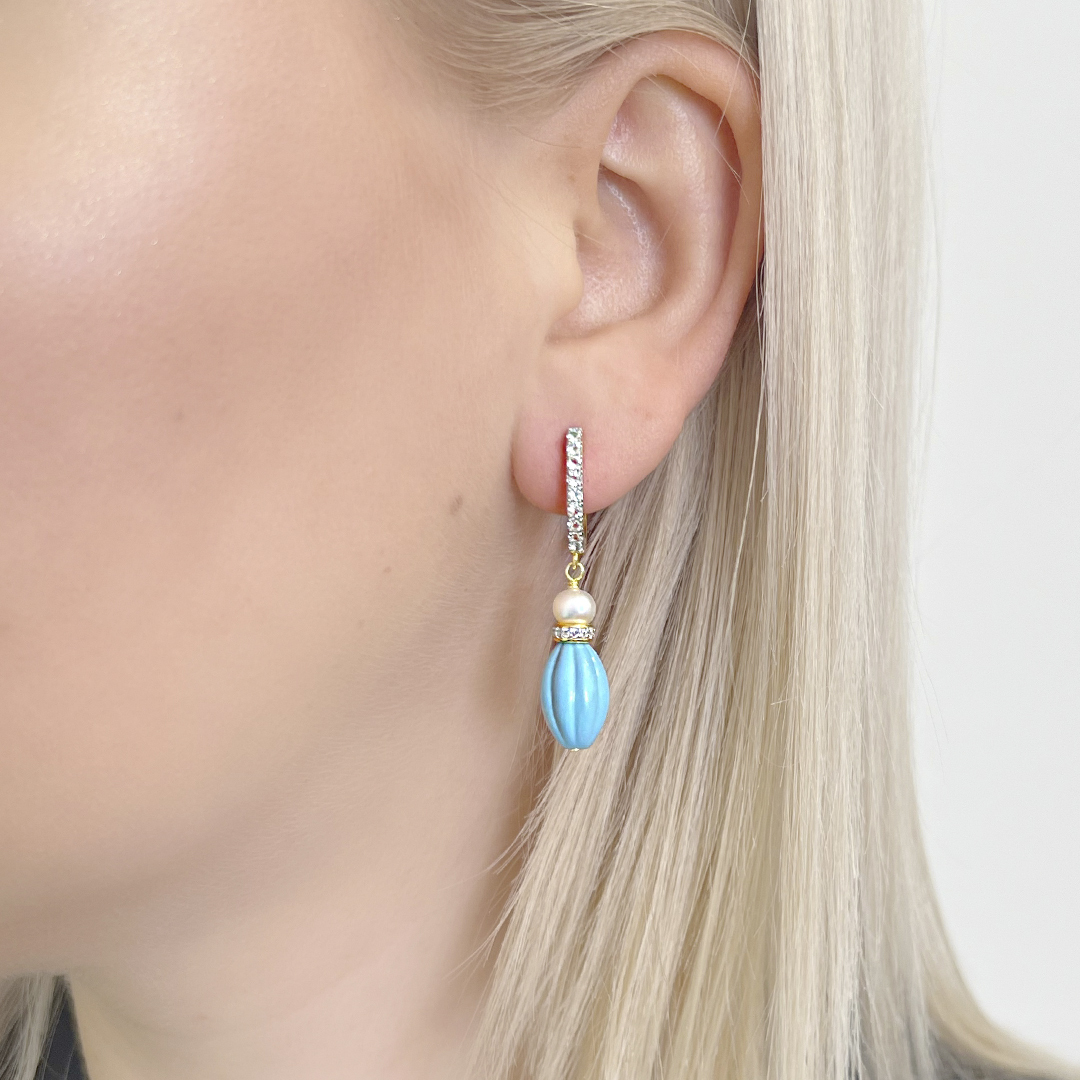 Серьги из серебра c жемчугом, топазами и бирюзой
