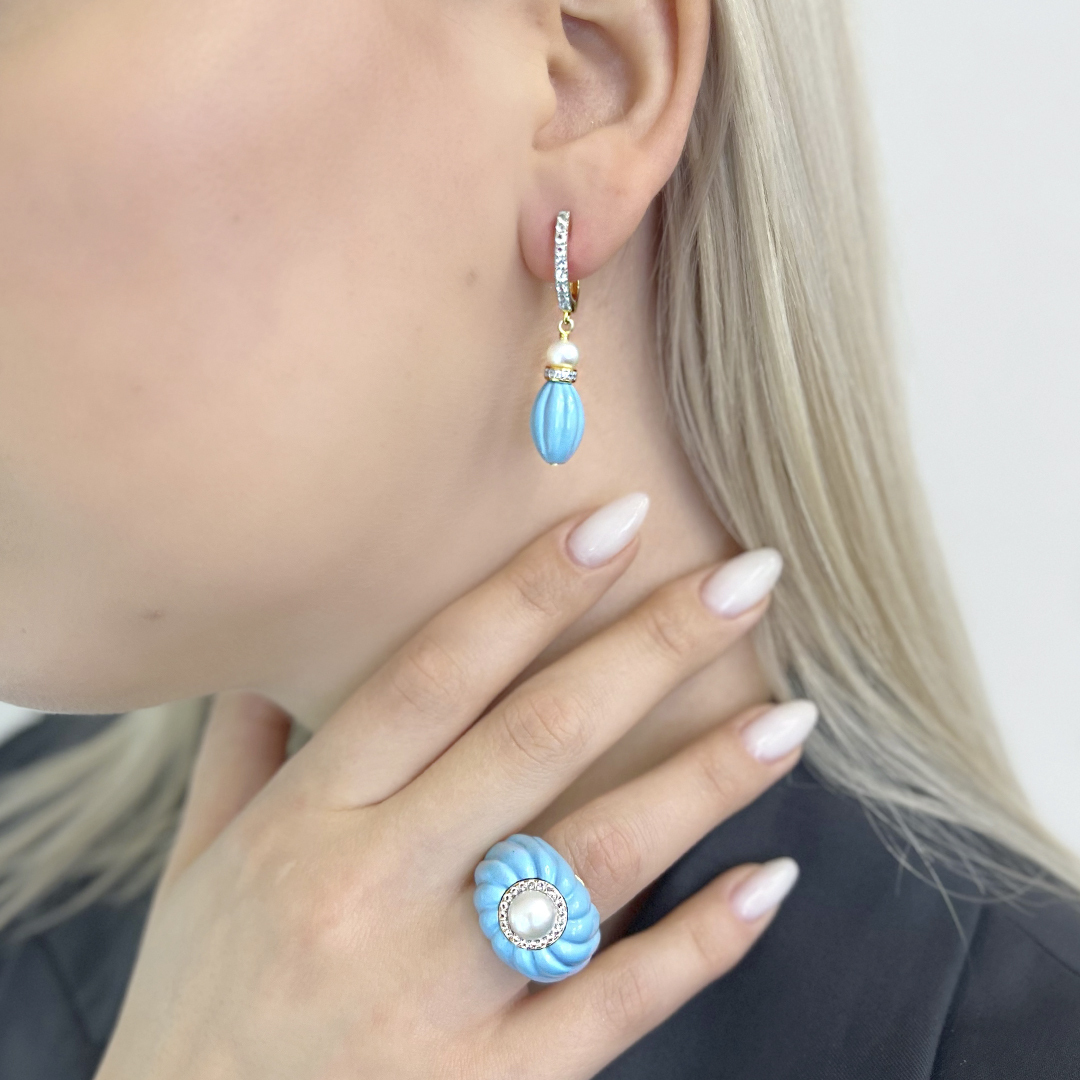 | Вставка | Топаз, цвет белый; Бирюза; Жемчуг морской культивир.; Позолота |
