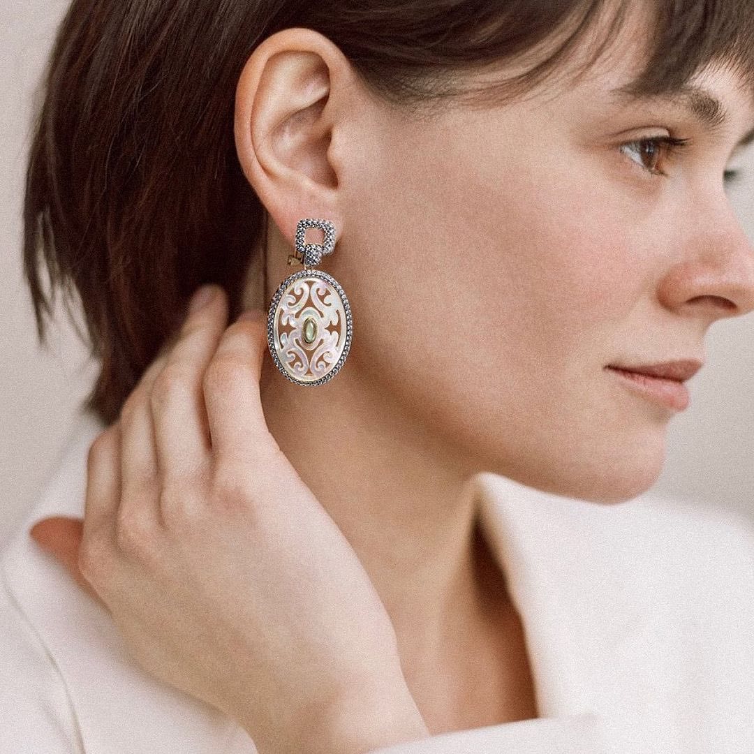 | Вставка | Перламутр; Фианит; Позолота; Родий, цвет черный |