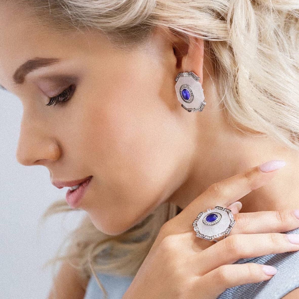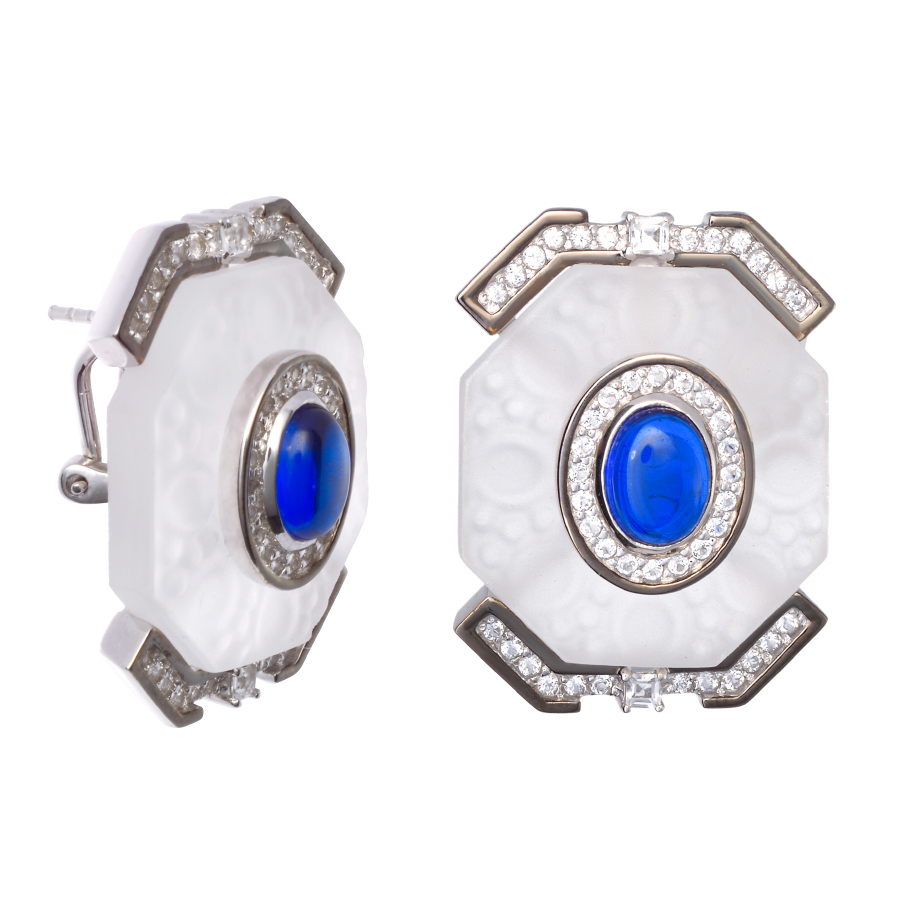 Серьги из серебра c сапфирами, топазами и горным хрусталем