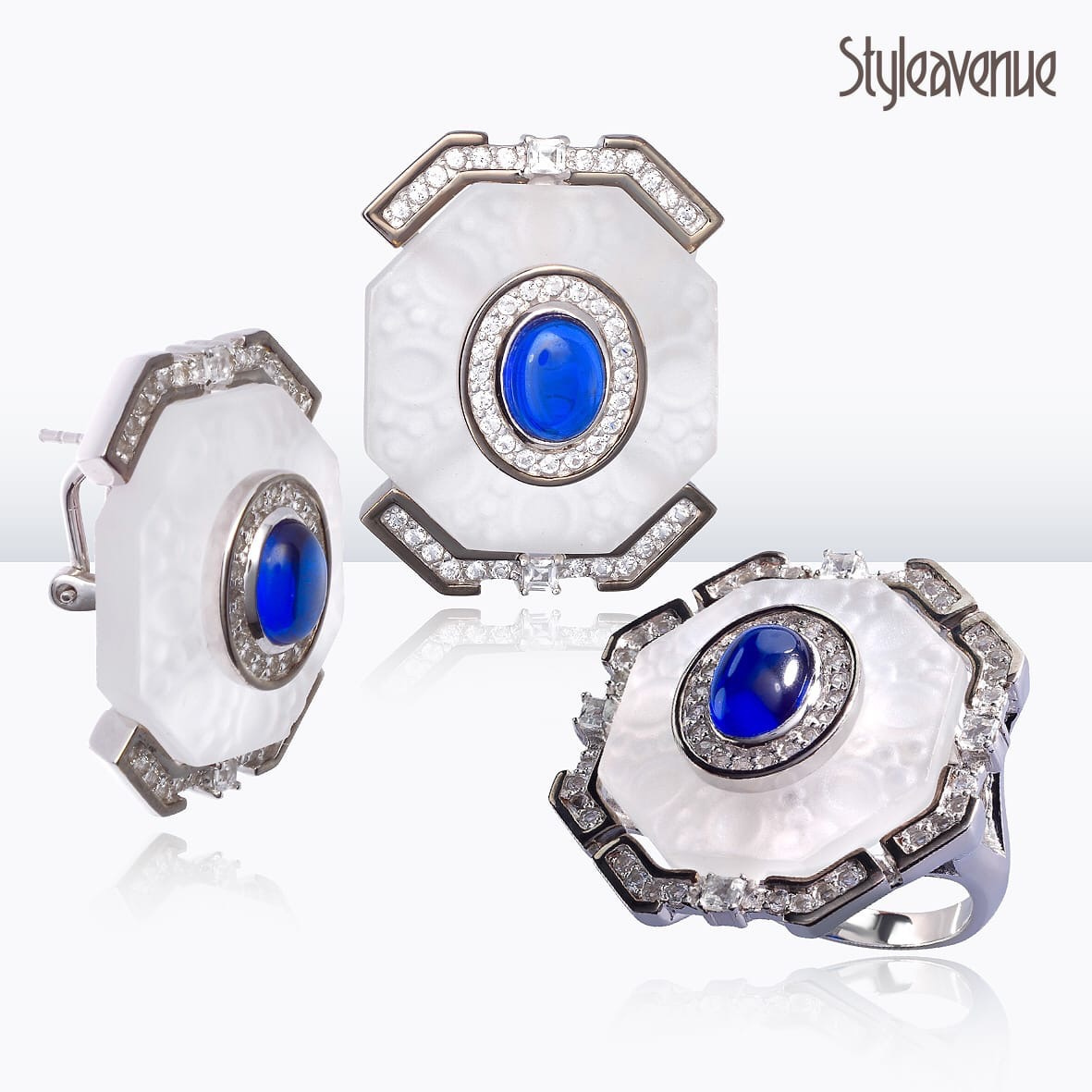 | Вставка | Сапфир синтетический; Горный Хрусталь; 92 Топаза, вес 1,15, цвет белый; Родий; Родий, цвет черный |