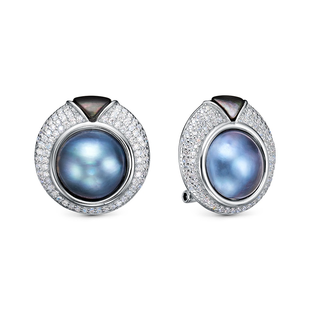 Серьги из серебра c жемчугом, фианитами и перламутром