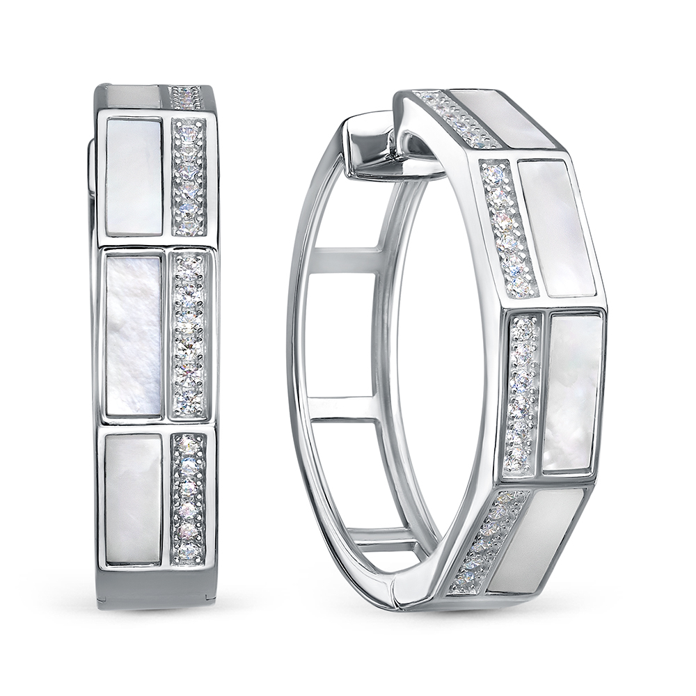Серьги из серебра c фианитами и перламутром